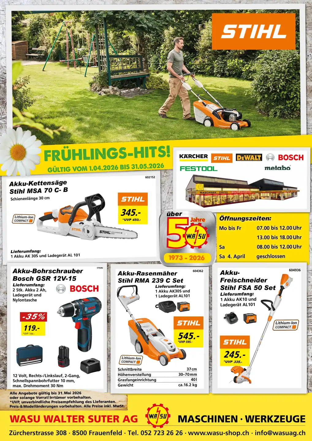 Samstag 4. April Geschlossen