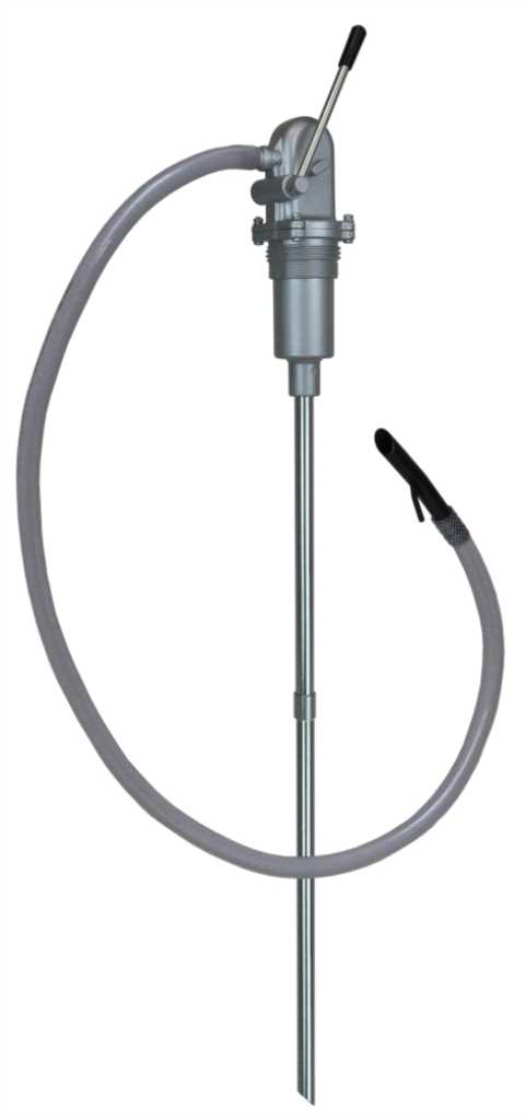 Kolbenpumpe mit Schwenkhebel für 50 - 200 l Fässer in leichter Ausführung, Pumpwerk mit Kugelrückschlagventil, 3-teiligem Saugrohrset aus verzinktem Stahl, 1,2 m PVC-Abgabeschlauch mit Auslauftülle für leichte Öle, Heizöl, Diesel, Petroleum, Kaltreiniger