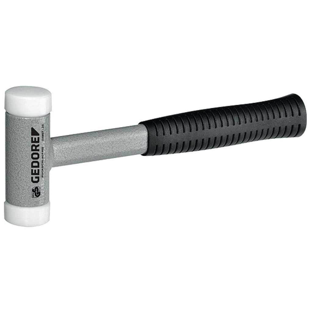 248 ST-30 RÜCKSCHLAGFREIER SCHONHAMMER Ø 30 MM Mit äusserst stabilem und robustem Stahlrohrstiel. Splitterfreie, bruch- und verschleissfeste Polyamid-Köpfe, 75 Shore D, getestet bis -20° CHammerschlagsilber pulverbeschichtet